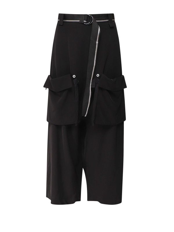 Get a cool, contemporary look with the Bize culottes. These timeless black pants have been designed with a straight leg, drop crotch and a comfortable elastic waistband at the back, while oversized flap pockets and a belt complete with contrasting stripe add a quirky finishing touch.