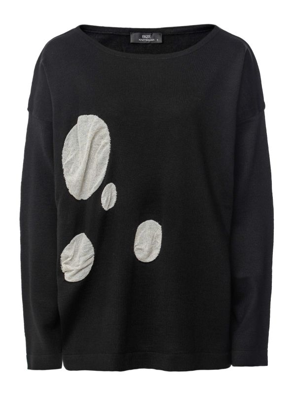 Soft and luxurious, this Bize jumper has an oversized silhouette with a loose and slightly boxy cut, a rounded neckline and long sleeves. Finished with four circles of different sizes in a contrasting colour and fabric. These unique design details give this jumper statement appeal, yet remains understated and elegant.