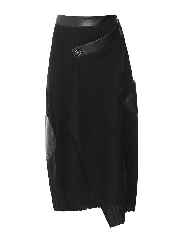 The Bize jersey knit midi skirt offers a classy look with a flattering silhouette. Crafted from a wool-blend, this skirt has a soft and cosy feel with contrasting faux leather trims, front pocket and circular patch. It fastens with a large button and is complete with a rib-knit hem. The skirt has a wrap-over style allowing for easy movement.