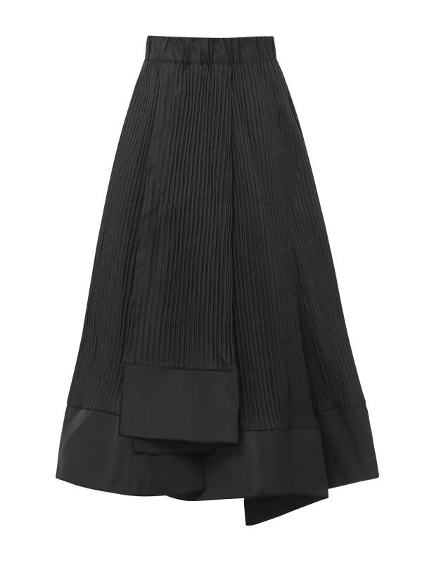 The Pleated Midi Skirt from Bize is the perfect piece for special event dressing. This statement skirt has an elasticated waistband, concealed zip fastening and side pockets. It features a stunning pleated fabric and layers that create decorative details and add volume. A truly elegant style, this skirt pairs well with both heels and flats.