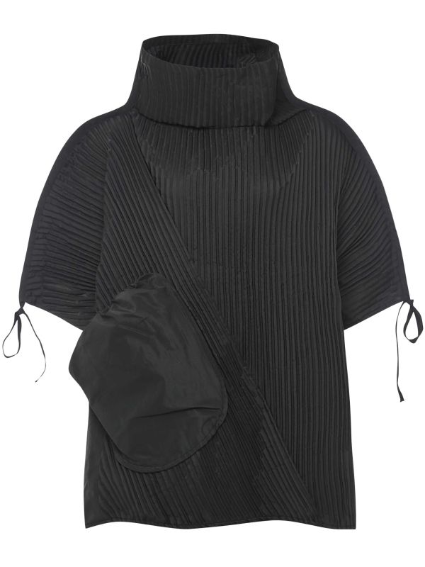 The Bize Pleated Poncho Blouse offers a unique look that can be dressed up or down. Featuring a high neck, dropped shoulders, structured curved sleeves with tie details, self-tie details to the sides and a single drawstring pocket that sits almost like its own bag. The pleated fabric gives voluminous texture, adding to the blouse's oversized silhouette. Style it with a slim midi skirt or go for the full pleated effect with the matching pleated skirt.