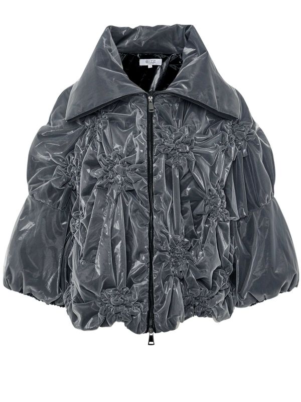 The Ruched Zip Jacket by Bize is a true statement piece. Full of texture and details, this Bize jacket showcases an extra large collar, zip closure to the front, 3/4 length sleeves with drawstring cuffs and an elasticated hem. It features lots of ruched details and a crisp mesh fabric with shine, perfect for styling in the evening or daytime to create dramatic looks.
