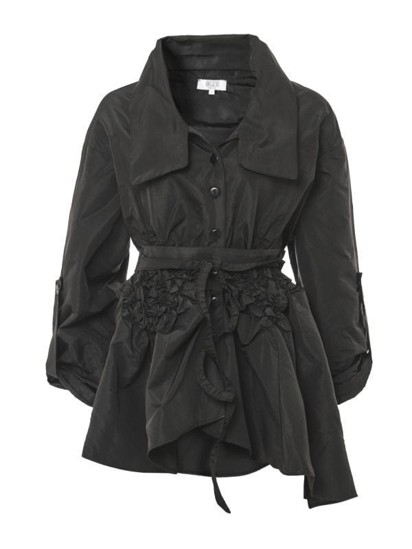 Looking for more unique pieces? The Bize Ruched Shirt is the perfect piece. This Bize shirt features an oversized asymmetrical collar, buttons down the front and a pretty ruched waist with ties that allows for an adjusted fit. The asymmetric hemline means it drapes beautifully over jeans and skirts, so you can wear it with just about anything.