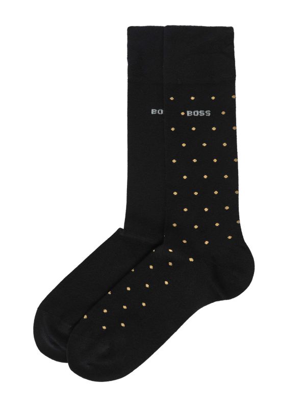 The BOSS bamboo socks 2 pack offers everyday comfort with a refined twist. Crafted from a viscose stretch blend made using bamboo-derived cellulose fibres, they provide a soft, breathable feel that keeps your feet fresh all day. Featuring one plain and one polka dot pair, each finished with subtle branding, these Hugo Boss socks strike the perfect balance between style and practicality for both work and weekend wear.