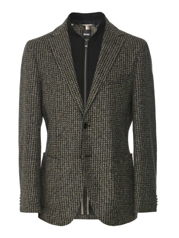 The BOSS C-Jaye bib jacket is an ideal choice for smart winter dressing. Tailored in a soft wool blend, the jacket features a detachable zip bib for added insulation. Featuring notch lapels with two button fastening, kissing button cuffs and three pocket front, with the check pattern making for a charming aesthetic.