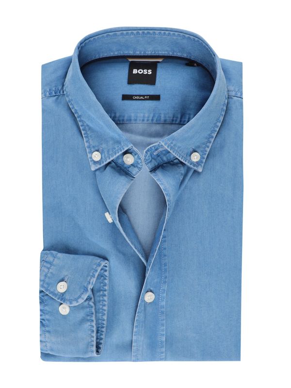 Featuring a button-down collar and long sleeves, it effortlessly merges sophistication with casual flair. The rounded buttoned cuffs add a subtle yet refined touch, ensuring versatility in styling. With its relaxed, casual fit, the BOSS denim shirt embodies effortless elegance, making it a wardrobe essential for the modern individual seeking both comfort and sophistication.