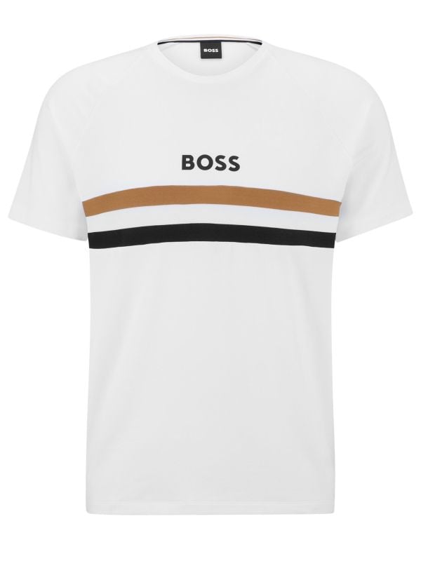Refresh your loungewear with the BOSS Fashion t-shirt. Engineered in a lyocell and cotton blend with stretch, the tee will ensure essential comfort and a super soft handle. Featuring a classic ribbed crew neck and short sleeves, whilst the striped graphic lends a signature Hugo Boss finish.
