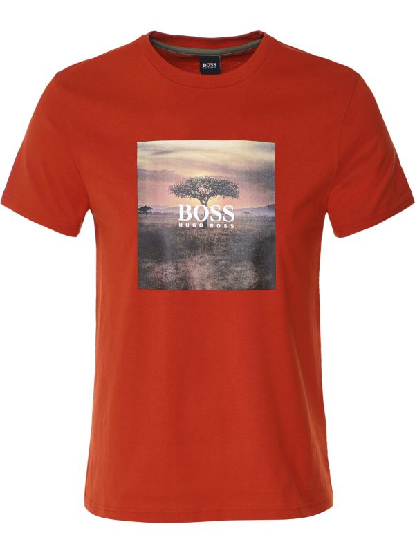 Lend your summer attire a warm pop of colour with the BOSS Troaar 5 t-shirt. Cut to a regular fit, the graphic tee has been crafted in 100% cotton for full recyclability at the end of its life, whilst the photographic sunset image to the chest is PVC-free and printed in only sustainable pigments.