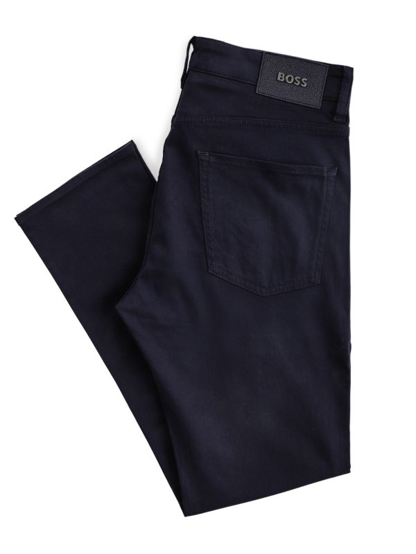 The BOSS Delaware Slim-Fit Jeans blend modern tailoring with everyday functionality. They feature a five-pocket silhouette with branded metal rivets and a textured waist patch with raised logo. Clean lines and a subtle twill weave make them adaptable for smart-casual looks and relaxed outfits, while belt loops provide styling options. Constructed from stretch cotton for comfortable movement, they sit with a considered cut that pairs easily with shirts or knitwear. Built for lasting wear.