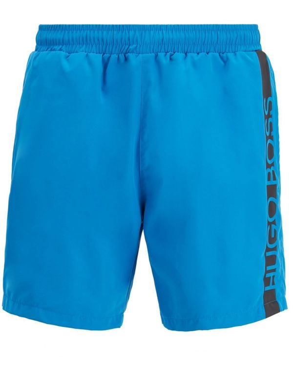 The BOSS Dolphin swim shorts will become a vacation staple this summer. Expertly crafted in a quick-dry shell, the swim shorts are the ideal choice for day-long poolside dressing. Featuring an elasticated drawstring waistband, fine net lining, side-entry hand pockets and handy Velcro seat pocket, whilst signature detail includes branded drawstring and side stripe for authentic appeal.