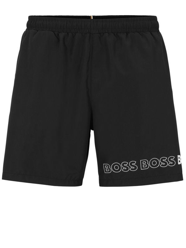 The BOSS Dolphin swim shorts will become a vacation staple this summer. Expertly crafted in a quick-dry shell, the swim shorts are the ideal choice for day-long poolside dressing. Featuring an elasticated waistband, fine net lining, side-entry pockets and handy Velcro seat pocket, whilst signature detail includes branded hem for authentic appeal.