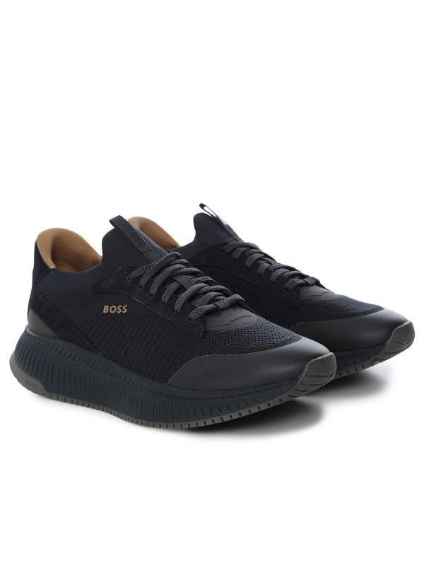 The BOSS Evo Knit Sneakers blend a lightweight knitted upper with suede overlays for a tailored sports-luxe look. The lace-up design and pull tabs ensure a secure fit while the sculpted rubber sole adds height and responsive cushioning for everyday wear. Subtle gold-tone branding on the side completes the pair. The trainer pairs neatly with tailored joggers or relaxed denim for contemporary casual styling, offering breathable construction and durable rubber underfoot. Designed for daily use, they deliver reliable traction and long-lasting wear.