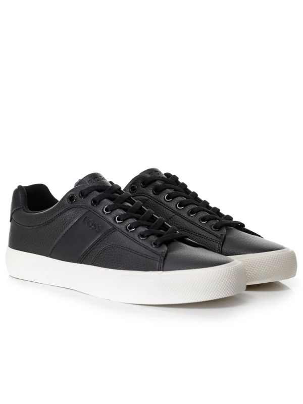 Step up your streetwear game with the BOSS Aiden_Tenn trainers, a sleek fusion of style and practicality. Crafted from grained faux leather, these lace-up kicks bring a rugged, textured finish that holds up in the urban grind.