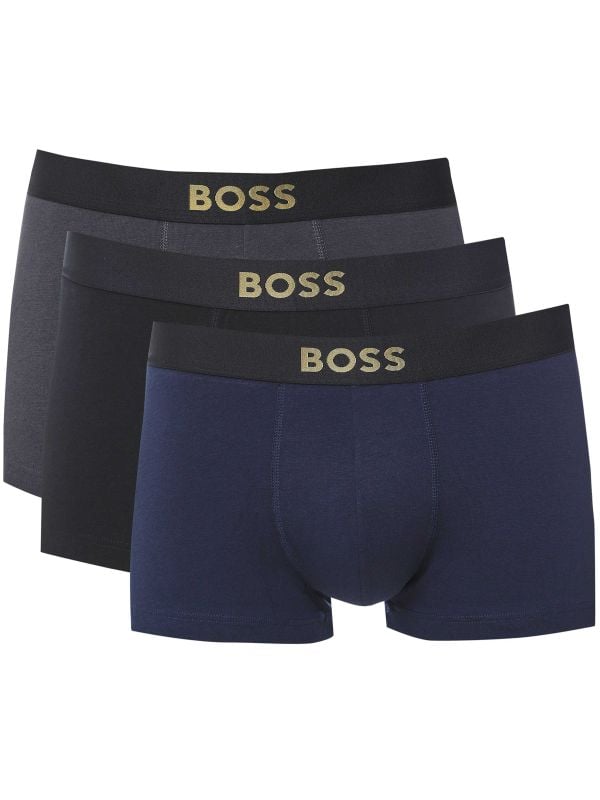 The BOSS Gold Logo trunks 3 pack combines comfort and style in one essential set. Made from a soft cotton stretch blend, these Hugo Boss trunks offer a flexible, supportive fit with a regular rise. Each pair features a striking gold logo waistband for a modern, premium touch. Packaged in a branded gift box, they’re perfect for treating yourself or as a sleek, practical gift.