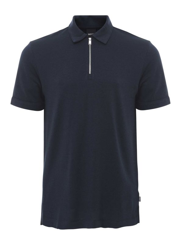 The BOSS H-Paras 57 polo shirt delivers a clean, modern look with a touch of sporty sophistication. Cut from a soft lyocell and cotton blend in a classic pique weave, it offers a breathable feel with a refined texture. The sleek zip neck gives it a contemporary twist, while the polo collar and short sleeves keep it timeless. Finished in a regular fit, the Hugo Boss polo shirt is an effortless upgrade for smart-casual dressing.