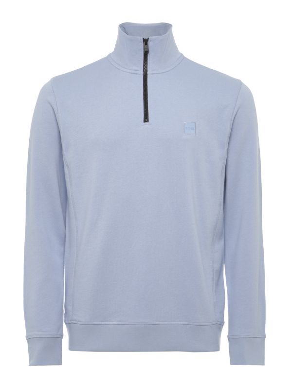 The BOSS Zetrust sweatshirt is crafted from high-quality cotton, ensuring both comfort and durability. This stylish piece features a modern stand collar and a convenient half-zip fastening, allowing for versatile wear. Its ribbed trims provide a snug fit, while the overlocked seams add a subtle touch of sophistication and durability.