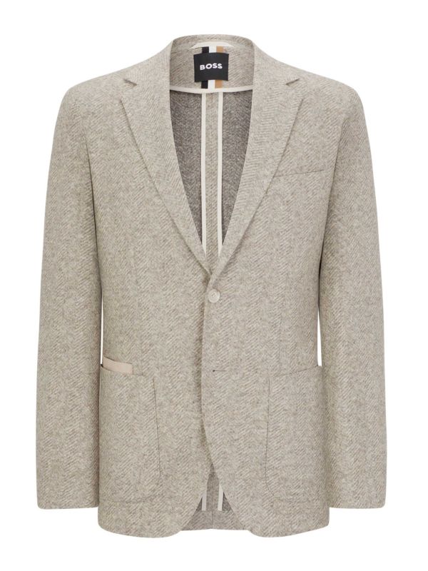 The BOSS C-Jaye jacket is a modern piece of tailoring ideal for those smart-casual occasions. Crafted in a jersey wool blend, the blazer is cut to a regular fit for a classic silhouette. Featuring a two button fastening, notch lapels and kissing button cuffs, whilst the contrast elbow patches adding heritage appeal. The Hugo Boss jacket is adorned in a herringbone pattern for a stylish depth of character.