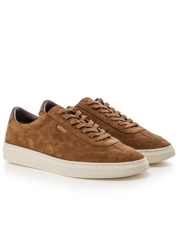 The BOSS Kieran Tenn Suede Sneakers present a contemporary low-top silhouette crafted from soft suede uppers with a leather heel patch. A lace-up fastening with flat woven laces and stitched toe panels emphasise the clean, tailored lines, while the branded rubber cup sole provides durable grip and support. Subtle side branding and a signature logo on the outsole give a discreet designer touch. Engineered for versatile wear, they balance heritage details with contemporary proportions and deliver long-wearing comfort. Pair with denim or smart chinos for a considered finish.