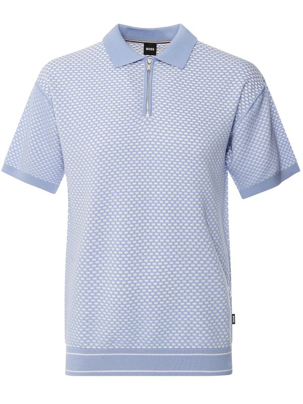 The BOSS Grande polo shirt showcases classic retro-sportswear inspiration. Cut to a relaxed fit, the polo has been crafted in pure mercerised cotton for a tactile handle and super soft finish. Featuring a traditional polo collar with zip placket, short sleeves and fine rib hem, whilst the subtle pattern provides a modern aesthetic.