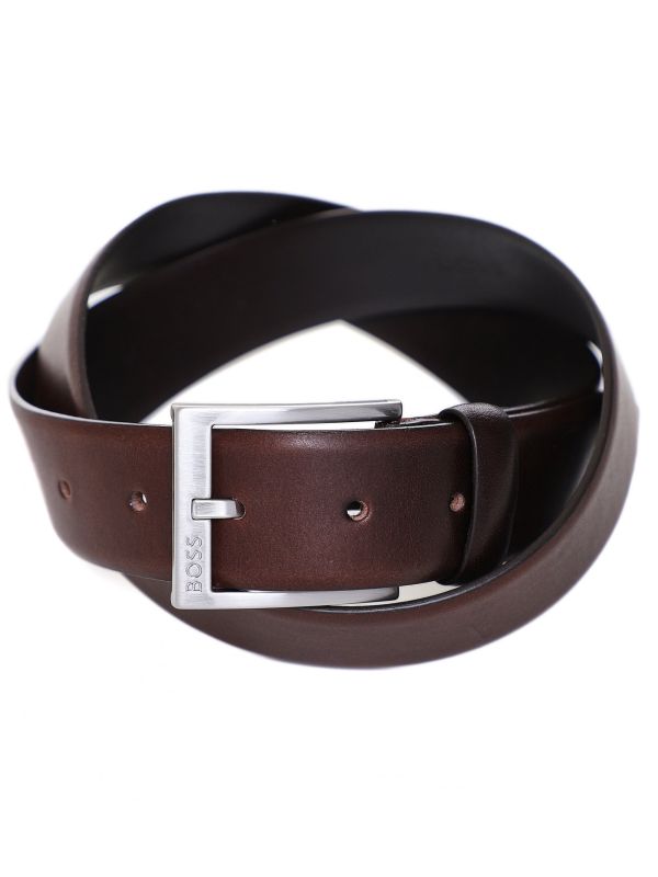 The BOSS Erron_Sz35 belt is the perfect option for formal accessorising. Crafted in genuine cow leather, the belt showcases a super smooth face and has been vegetable tanned for a rich hue. Featuring a square silver-tone pin buckle and chiselled tip, whilst the engraved logo to the buckle adds signature detail.