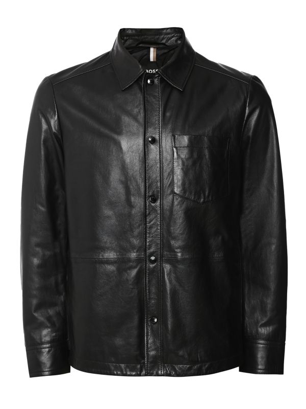 The BOSS MyShirt jacket is a modern hybrid that exudes sleek character. Expertly crafted in the finest nappa leather, the jacket showcases a smooth and supple handle. Featuring a Kent collar with snap button fastening, three pocket front and snap button cuffs. The BOSS jacket can be easily layered as an overshirt or worn as a stand alone jacket during trans-seasonal months.