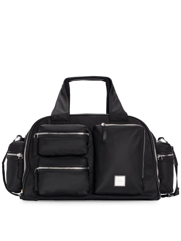 A branded metal plate adds a touch of sophistication, complemented by the zip closure and polished silver-tone hardware, which ensure security and elevate the bag's overall appeal. With double carry handles for versatile carrying options, the bag is as functional as it is fashionable. Complete with a branded dust bag, this black holdall embodies BOSS's commitment to both luxury and environmental responsibility.