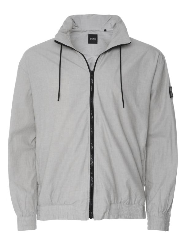 Showcase luxe urban appeal this season with the BOSS Land jacket. Expertly crafted in a lightweight woven cotton, the jacket promises essential breathability and a shirt-like handle. Featuring a drawstring funnel collar with concealed hood, zip-through fastening and elasticated trims for excellent wind protection, whilst the in-seam press stud pockets offer handy functionality. The Hugo Boss jacket is complete with a silicone brand badge to the sleeve for iconic detail.