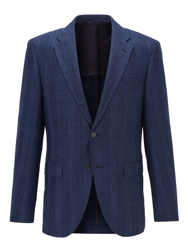 Refine your summer wardrobe with the BOSS Jestor4 jacket. Tailored to a regular fit and crafted in a virgin wool and linen blend, the navy jacket ensures a masculine silhouette and essential breathability in warm weather. Featuring a two button fastening, notch lapels and kissing button cuffs, whilst the tonal check pattern and faux suede elbow patches add heritage-inspired detail.
