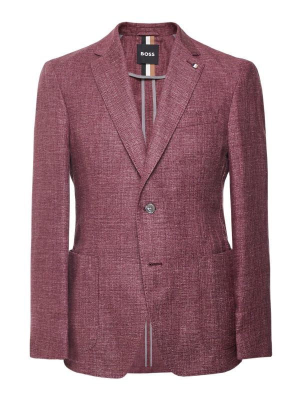 The BOSS C-Hanry-232 jacket is an elegant option for fresh summer tailoring. Cut for a slim fit with micro pattern, the blazer is crafted in a virgin wool and linen blend. Featuring a two button, single breasted fastening, notch lapels and double vent, whilst the unlined construction makes for essential breathability.