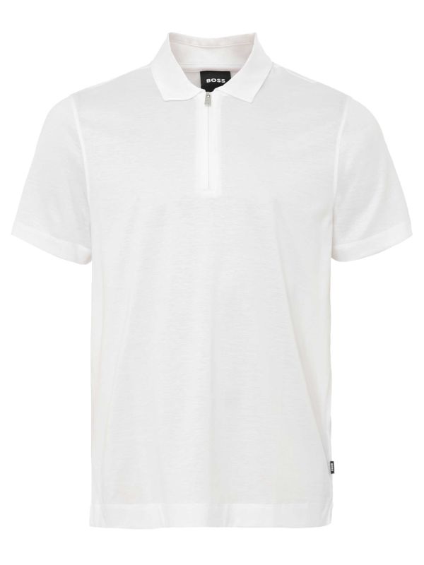 The polo collar and zip placket add a contemporary touch, making it a sharp alternative to traditional button styles. Cut to a regular fit, this short-sleeve Hugo Boss polo is a versatile piece, perfect for elevating off-duty looks with a modern, masculine edge.