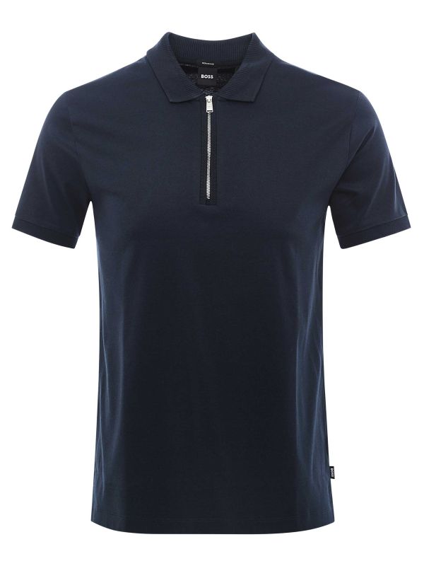 Crafted from luxurious mercerised cotton, the BOSS Polston 11 polo shirt delivers sophistication and comfort. Its refined construction boasts a sleek zip placket, offering a modern twist to the classic polo design. With short sleeves and ribbed cuffs, it strikes a perfect balance between casual ease and polished style.
