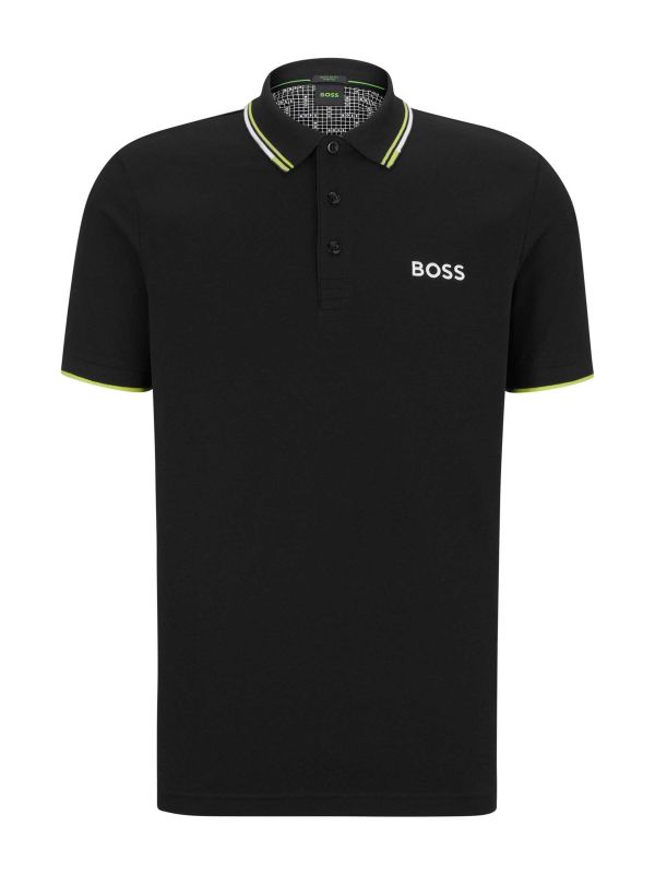 The BOSS Paddy Pro polo shirt is a premium option for the golf course. Crafted in cotton blend pique with stretch, the polo shirt is ideal for the gent with an active lifestyle. Featuring a flat knit collar and cuffs with three button placket, whilst the tipped trims provide sporty detail.