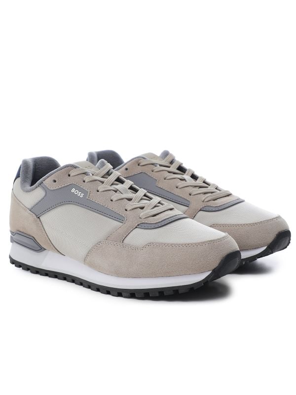 The BOSS Parkour-L_Runn_sdnyt trainers offer a fresh, sporty look with a mix of leather and textile uppers featuring dynamic panelling for added texture and style. The lace-up design ensures a secure fit, while branded details on the side and tongue add a signature touch.