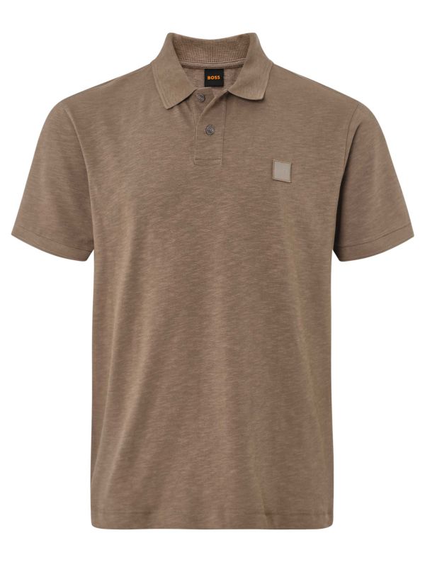 The BOSS Pe_linenlogo polo shirt is a lightweight essential, perfect for warm-weather styling. Crafted from a cotton and linen blend, it offers a breathable, soft feel with a natural texture. The classic polo collar and two-button placket create a timeless silhouette, while ribbed cuffs add a refined touch.