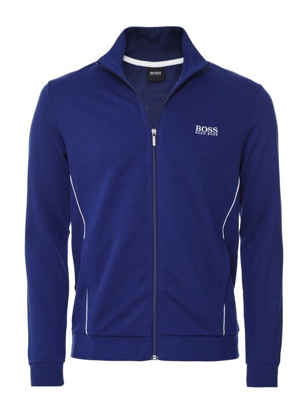 Add sleek style into your essential loungewear with the BOSS tracksuit jacket. Engineered in a cotton-poly pique and cut to a regular fit, the track top will ensure day-long comfort. Featuring a sporty funnel neck, zip-through fastening and handy in-seam side pockets, whilst the contrast piping lends dynamic detail.