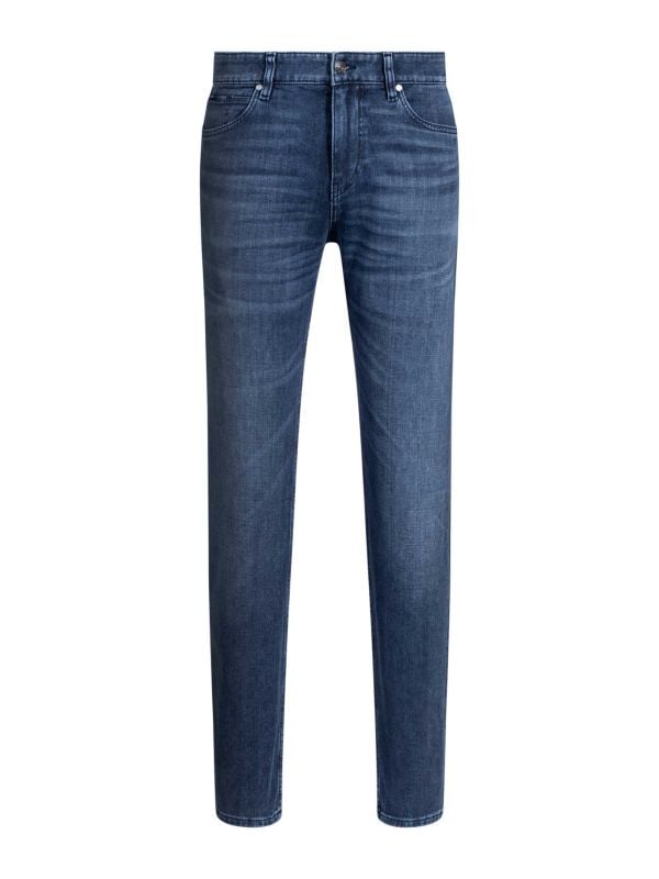 The subtle faded finish and whiskering add a touch of worn-in character, while the regular fit with a regular rise and tapered leg creates a sharp, streamlined silhouette. Available in regular or long leg lengths, these Hugo Boss jeans are a reliable go-to for effortless, off-duty style.