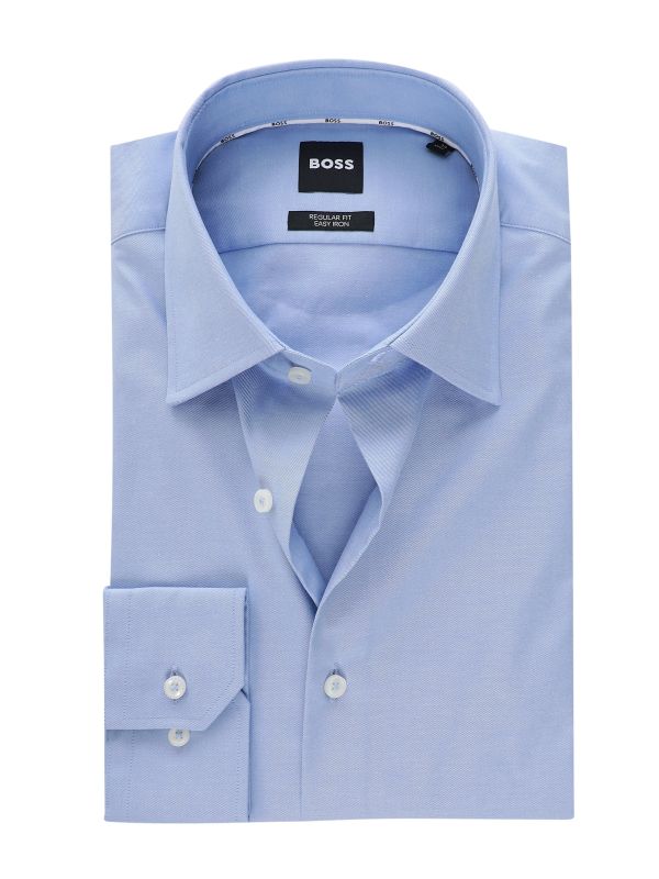 Designed with long sleeves and adjustable buttoned cuffs, it allows for a tailored fit at the wrists. Cut in a regular fit, this Hugo Boss dress shirt delivers a sharp yet comfortable silhouette, making it a versatile staple for any well-dressed gentleman.