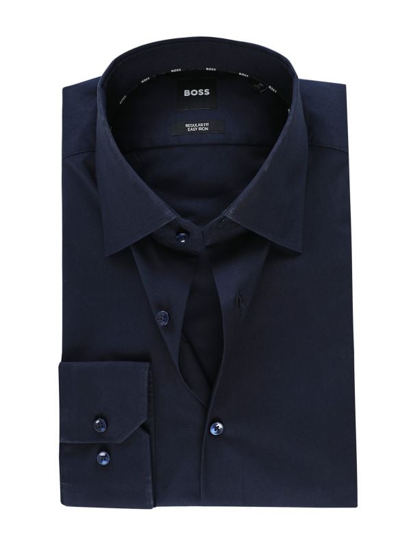 This formal shirt by BOSS features a classic Kent collar and long sleeves, complemented by adjustable buttoned cuffs for a customisable fit. Designed with a regular fit, it offers a polished yet comfortable silhouette. The easy-iron fabric ensures effortless maintenance, making it an ideal addition to any professional wardrobe.