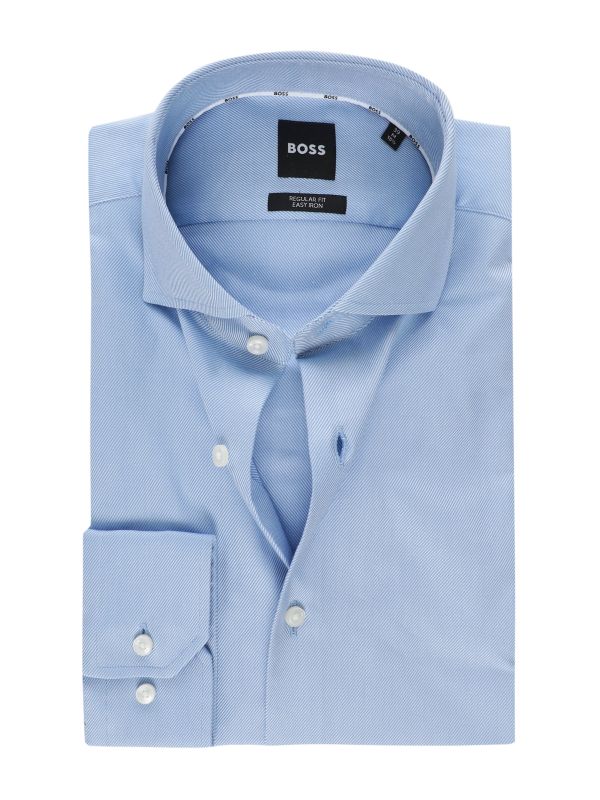 The easy-iron finish ensures it stays crisp and sharp throughout the day, while the adjustable buttoned cuffs allow for a customisable fit. Designed in a regular fit, this Hugo Boss formal shirt provides a classic silhouette, making it an essential addition to any professional wardrobe.
