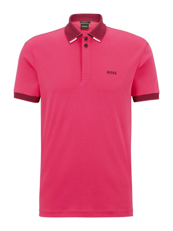 Introduce modern sporty style into your wardrobe with the BOSS Paddy 1 polo shirt. Cut to a regular fit and crafted in premium cotton interlock, the polo is a super comfortable option perfect for the active gent. Featuring a flat knit collar and cuffs, half concealed button placket and embroidered logo to the chest, whilst the contrast patterned trims add dynamic detail.
