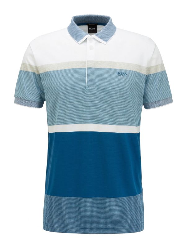 Lend your casual essentials true sporty design with the BOSS Paddy 4 polo shirt. Cut to a regular fit and crafted in premium cotton pique, the short sleeve polo assures a comfortable and breathable wear. Featuring a flat knit collar and cuffs, bold colour block stripes and rubberised logo to the chest, whilst the half-concealed button placket lends unique detail synonymous with the German fashion house.