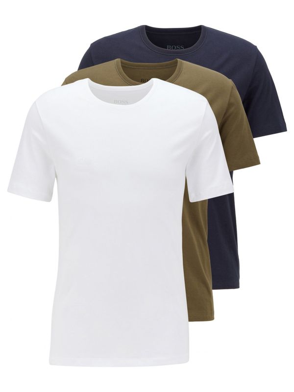 Spruce up your essential basics with the BOSS three pack of t-shirts. Crafted from a super soft jersey cotton, the t-shirts come in three versatile hues of white, navy and green. Featuring a traditional ribbed crew neck, whilst the regular fit provides a comfortable wear. The Hugo Boss t-shirts are complete with an embroidered logo to the chest for an authentic touch, whilst the branded box makes for a great gift for a loved one.