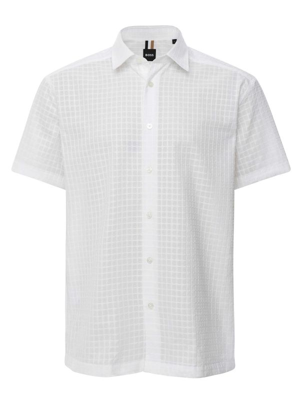 The Kent collar and button-down front give it a sharp edge, while the short sleeves and relaxed fit keep it effortlessly casual. Whether you're pairing it with jeans for weekend plans or layering it over a tee, this versatile Hugo Boss shirt brings easy-going style with a polished finish.