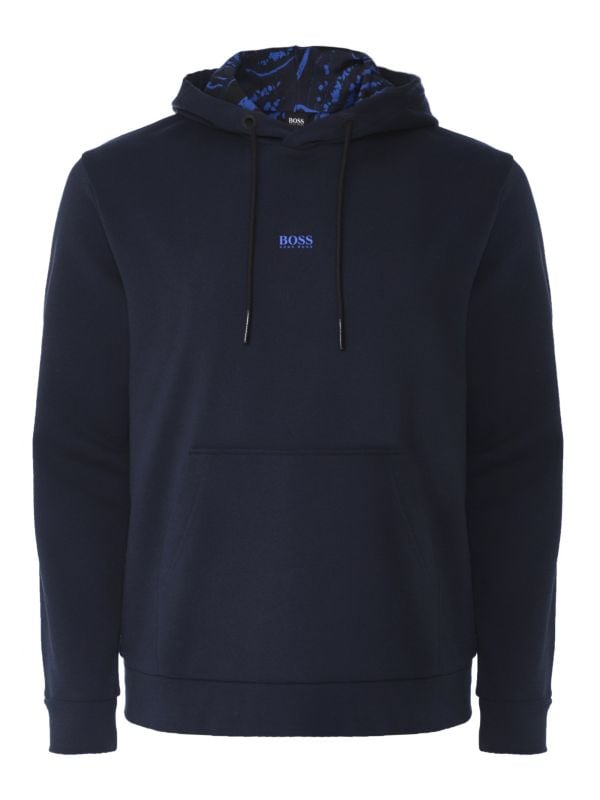 Introduce urban sportswear into your casual attire with the BOSS WKapok hoodie. Responsibly crafted in a cotton and kapok blend, the sweatshirt has been cut to a relaxed fit offering a cosy and comfortable layer. Featuring a drawstring hood, ribbed trims and traditional kangaroo pocket, whilst the creative print to the hood lining lends dynamic detail.