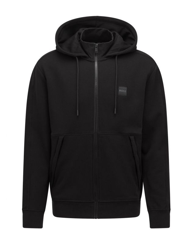 The BOSS Zetalk hoodie will guarantee premium comfort. Engineered in pure French terry cotton and cut to a relaxed fit, the sweatshirt offers a super soft handle and boxy silhouette. Featuring a classic drawstring hood with zip through fastening, ribbed trims and split kangaroo pocket, whilst the woven brand badge adds signature detail.