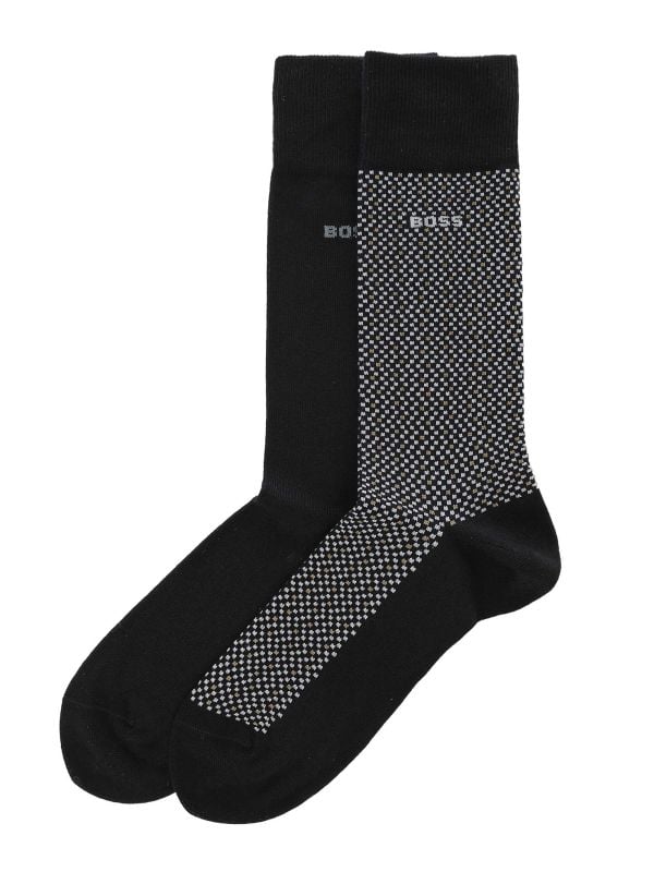 Step up your essentials with the BOSS RS Mini Cube CC socks 2-pack, crafted for men who demand comfort, durability, and subtle style. Made from a soft cotton stretch blend, they offer all-day breathable wear and a perfect fit. This two-pack includes one plain pair and one patterned pair, giving you effortless versatility for work, weekends, or smart-casual looks. Built with a reinforced heel and toe for long-lasting wear and finished with a sleek jacquard logo, these BOSS socks are a trusted favourite for men who invest in premium basics. Don’t wait — add to basket now and refresh your sock drawer with a BOSS essential that delivers comfort, style, and everyday reliability.