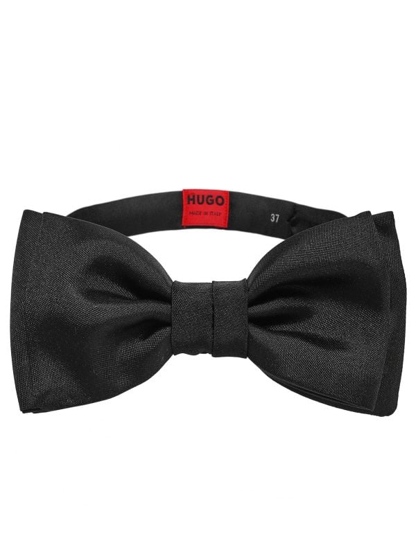 Elevate your evening attire with the HUGO silk bow tie. Lovingly crafted in Italy using premium satin silk, the bow tie showcases a classic butterfly shape whilst being pre-tied for ease. The Hugo Boss bow tie is complete with an adjustable collar meaning one size fits all.