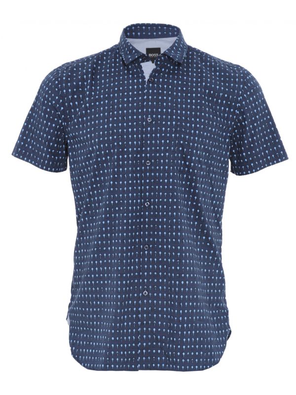 The BOSS Magneton_1-short shirt is the perfect option for laid-back summertime dressing. Cut to a slim fit and crafted in a cotton poplin blend, the short sleeve shirt offers a tailored silhouette and has been garment washed for supreme softness. Featuring a pointed collar, rounded hem and patch pocket, whilst the repeat palm print motif exudes summer-ready style.