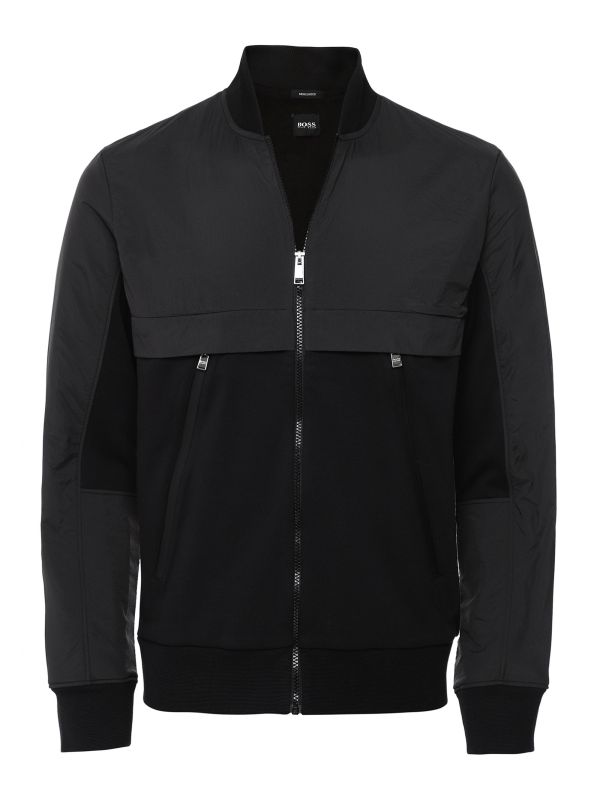 The BOSS Skiles 37 jacket exudes classic sports-inspired detail. Engineered in pure cotton with contrast poly upper and sleeves, the jacket is the perfect go-to layer on casual days. Featuring a traditional bomber collar and silhouette, zip-through fastening and oversized zippered side pockets, whilst the branded reverse adds a varsity-style finish.