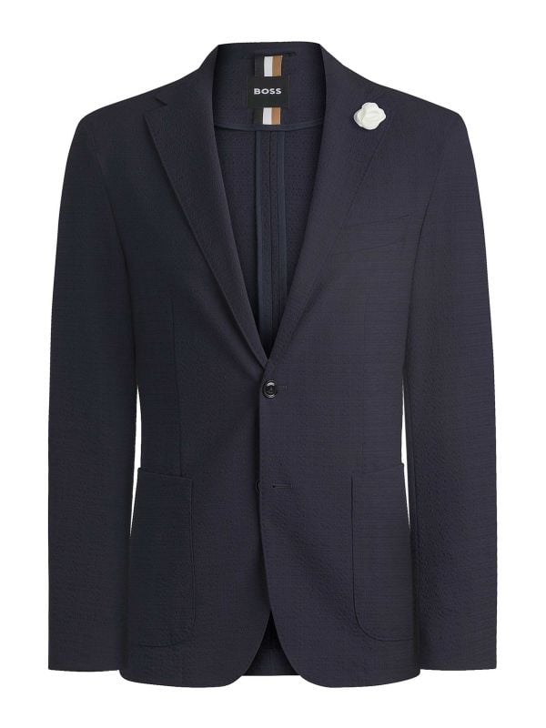 Functional details include a chest pocket and lower patch pockets, giving it a laid-back yet elegant appeal. The double back vent ensures ease of movement, and the buttoned cuffs add a sharp finishing touch. Cut to a slim fit, this Hugo Boss blazer delivers a streamlined silhouette, making it perfect for both smart-casual and semi-formal occasions.